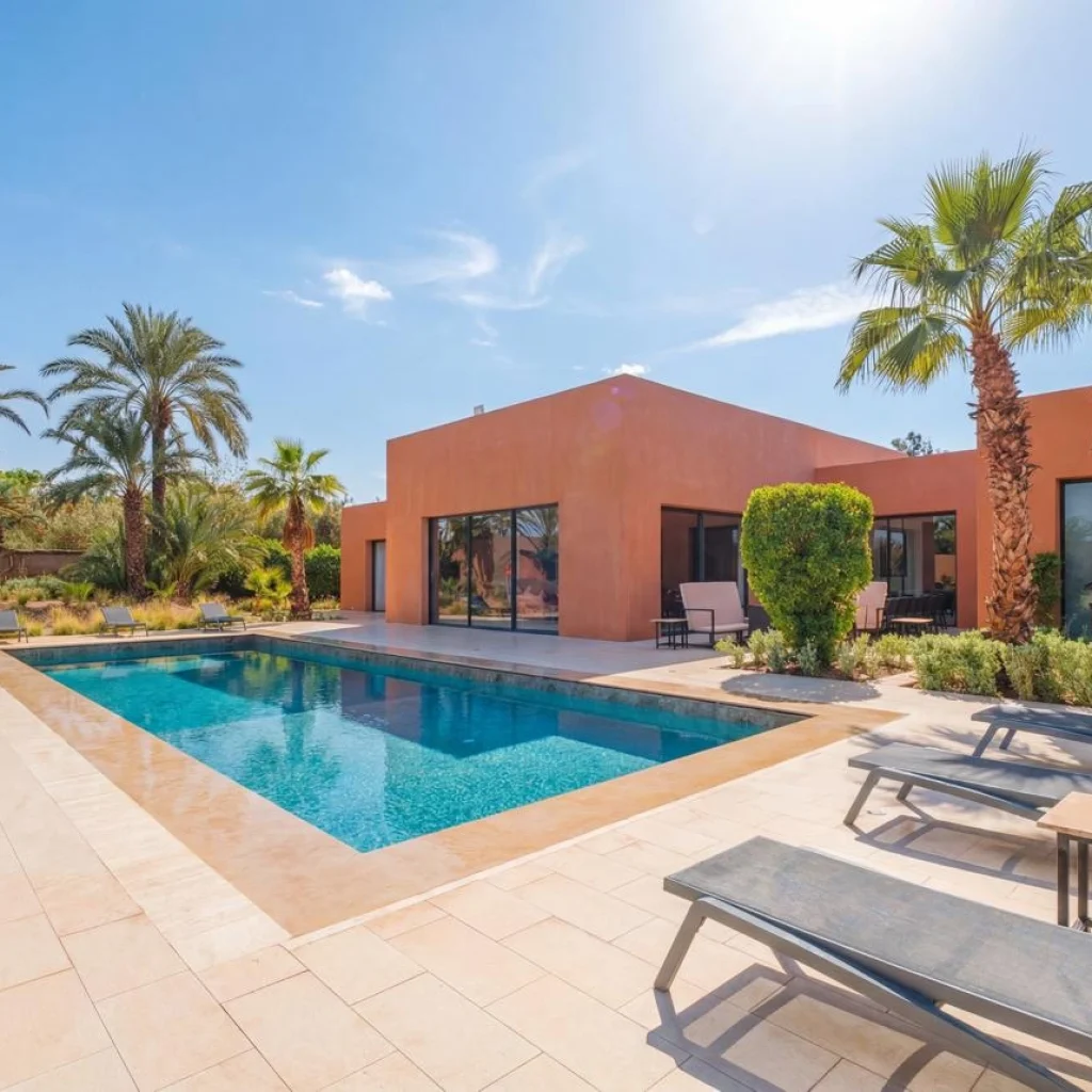 À l’extérieur, la villa dispose d’une piscine en L (eau salée) de 8 m x 7 m (profondeur progressive inférieure à 1,80 m). L’espace piscine est équipé de transats, de parasols et de hamacs. Vous trouverez également un coin repas extérieur et un barbecue portable.